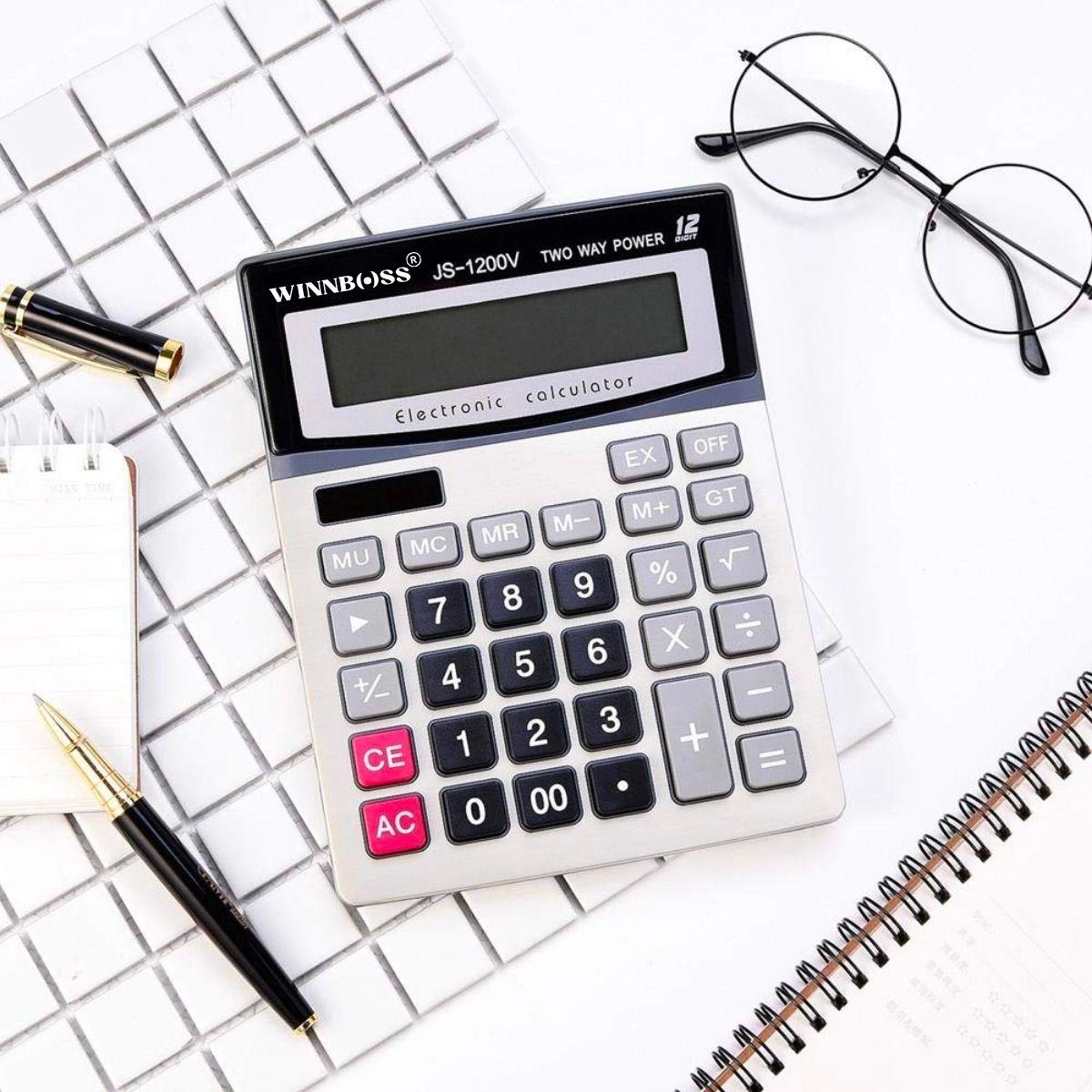 12 Haneli Geniş LCD Ekran, Ofis, İlkokul, Market veya Ev Kullanımına Yönelik Pilli Büyük Düğmeli Hesap Makinesi