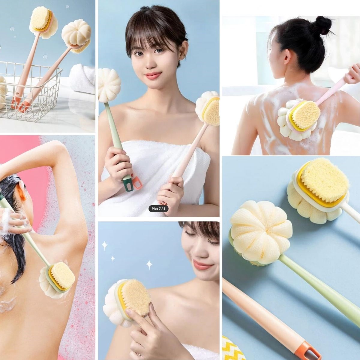 2’si 1 Arada Çift Taraflı Uzun Saplı Fırçalı Banyo Vücut Fırçası & Banyo Lifi