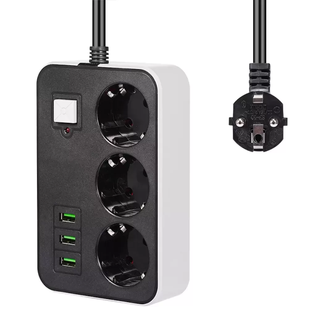 3 usb çıkış portuna sahip aşırı yük korumalı priz ile telefon tablet vb.