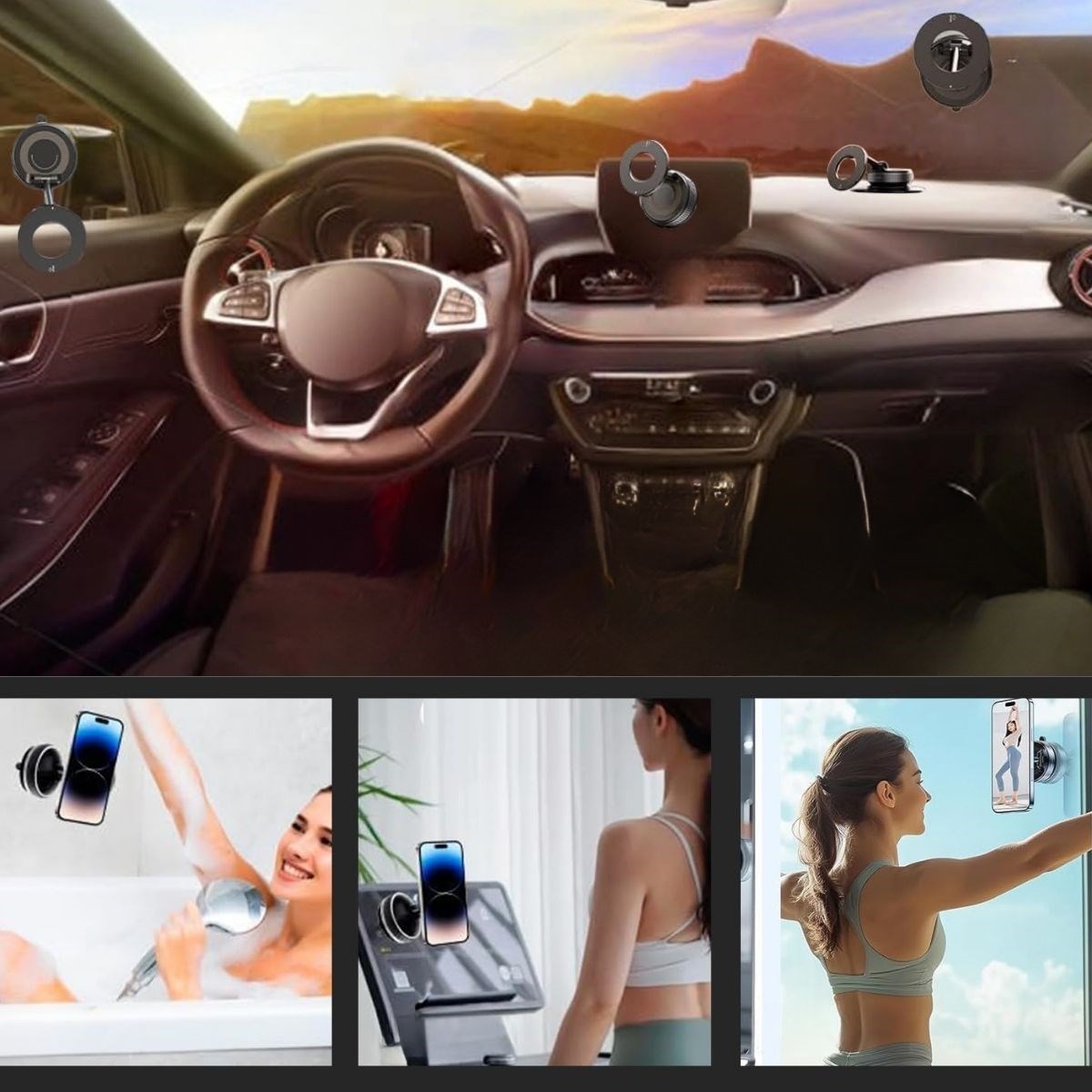 Vakumlu Emişli Manyetik Telefon Tutucu, güçlü tutuşu ve pratik kullanımıyla telefonunuzu güvenle sabitlemenin en akıllı yolunu sunar. Yenilikçi vakum emiş sistemi sayesinde delme, yapıştırma veya kalıcı iz bırakmadan cam, masa, fayans, ayna ve araç içi gibi düz yüzeylere kolayca tutunur.