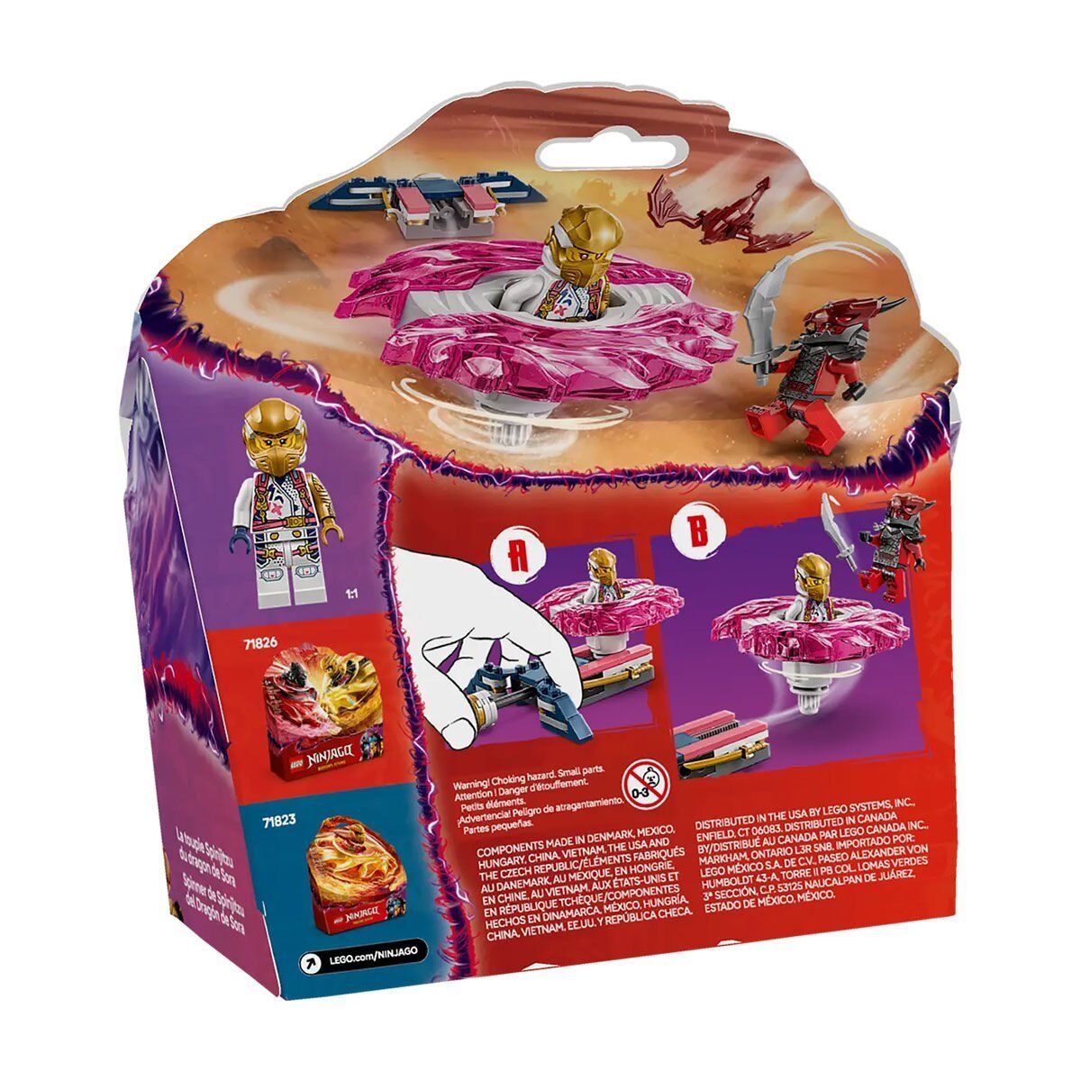 Bu küçük LEGO setinde ayrıca 2 minifigür bulunur: Ejderha Spinjitzu topacının içinebinen ve kılıç aksesuarı olan Sora, kendi kılıç aksesuarı olan kötü Ejderha Savaşçısı, ayrıca küçük bir ejderha yaratığı modeli. Çocuklar, bu popüler NINJAGO karakterleriyle iyiyle kötü arasında savaşlar yaparken harika rol yapma aksiyonunun keyfini çıkarabilir.
