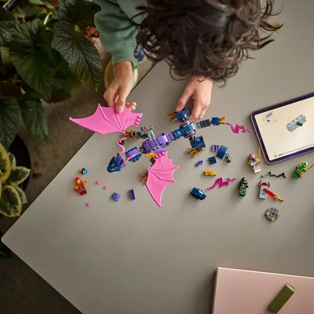 LEGO® NINJAGO® Usta Ejderha Rontu (71842) oyuncağıyla 7 yaş ve üzeri ninja hayranları, NINJAGO Ejderhaların Yükselişi TV dizisinin 3. sezonundan aksiyon dolu sahneleri canlandırabilir. Çocuklar için bu yapım setinde kuyruğu, bacakları, kanatları, başı ve çenesi hareket eden, sırtında minifigür koymak için 2 yeri ve kanatlarının altında birer mermi atıcısı olan bir oyuncak ejderha bulunur.