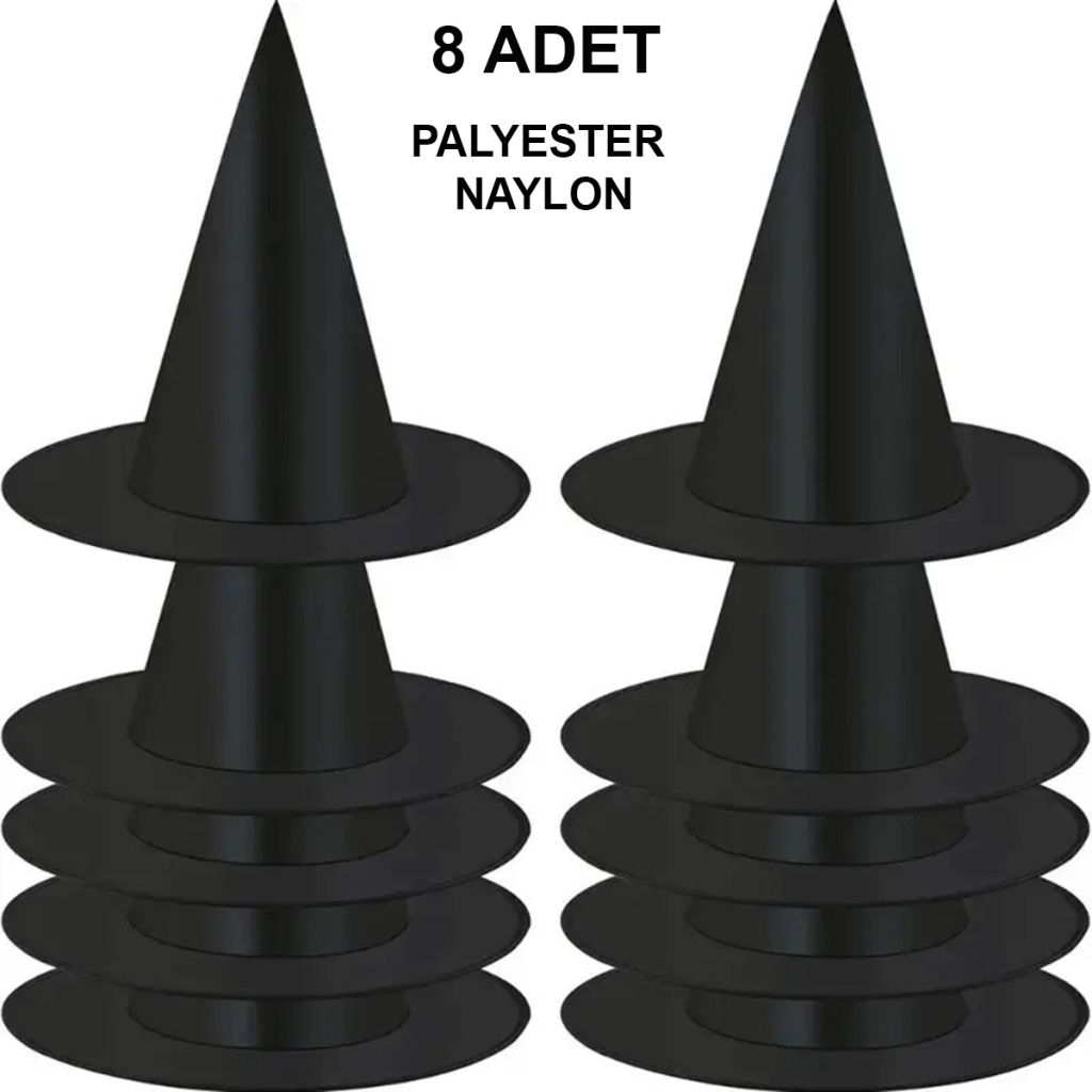 8 Adet Siyah Cadı Şapkası – Yetişkin & Çocuk Kostüm Aksesuarı (5343)