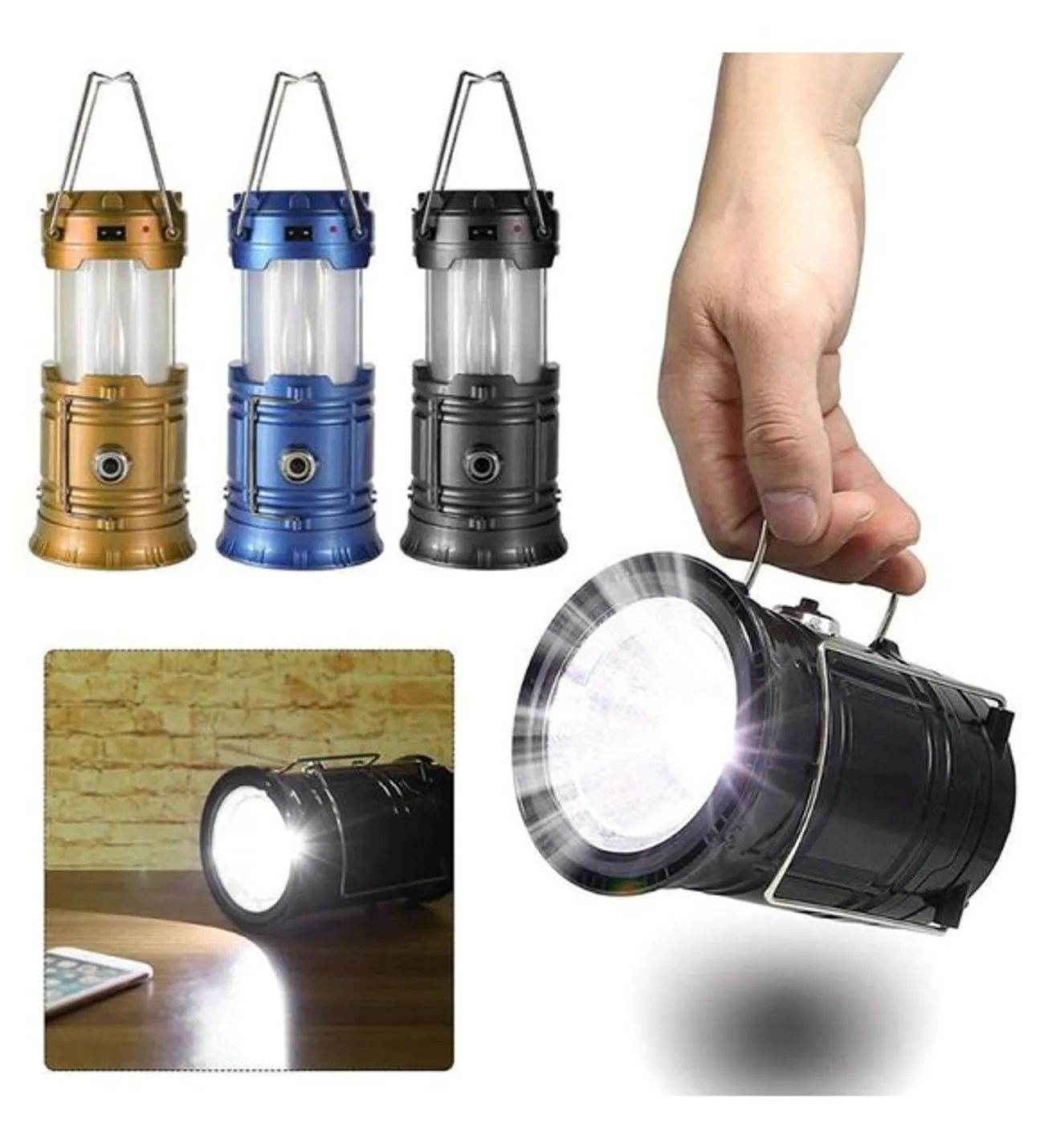 Avcı Feneri Kamp Lambası Şarjlı USB Girişi Solar