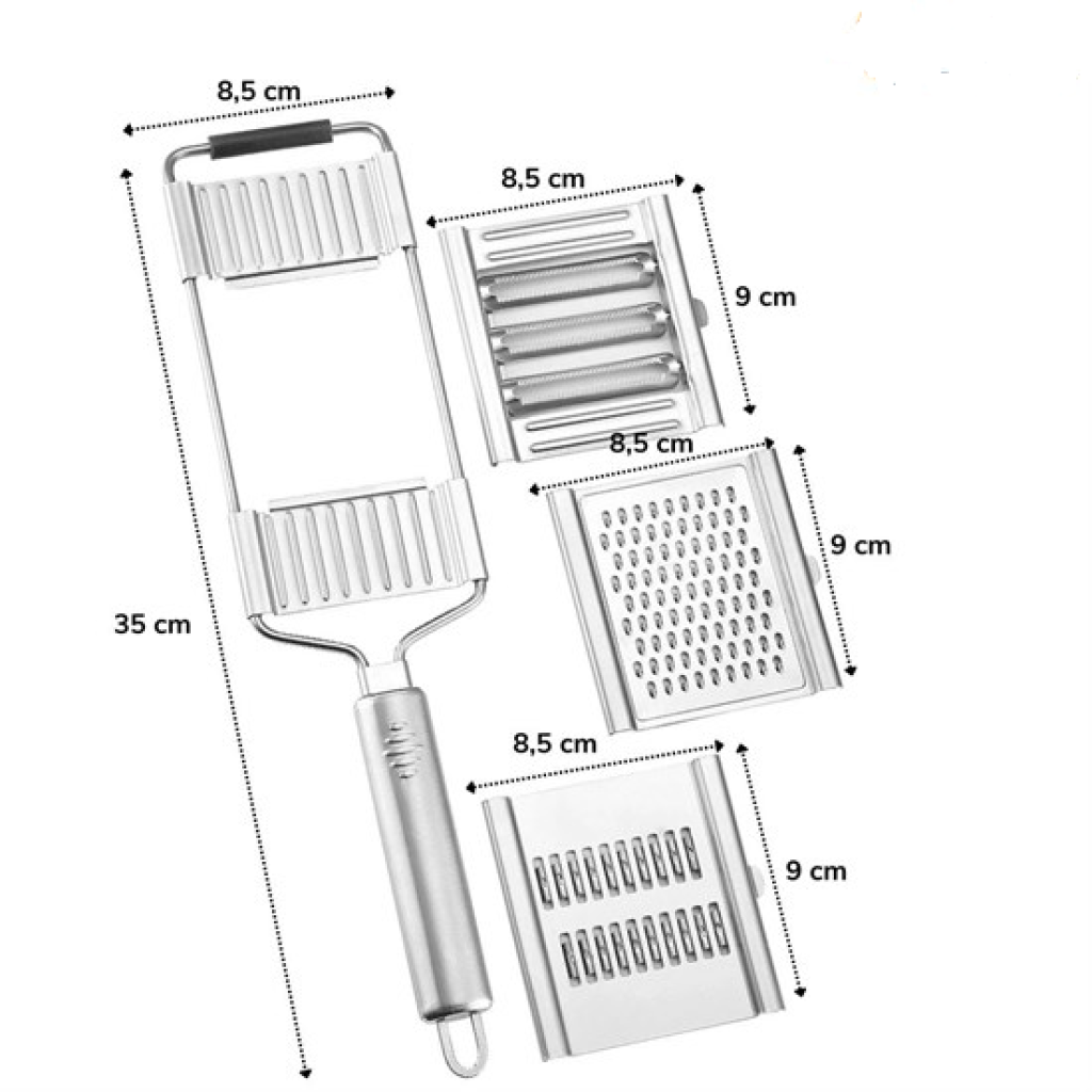 Ayarlanabilir 3 Farklı Başlıklı Tutmalı Kaydırmaz Taban Paslanmaz Çelik Sebze Dilimleyici Peynir Rendeleyici Aparat
