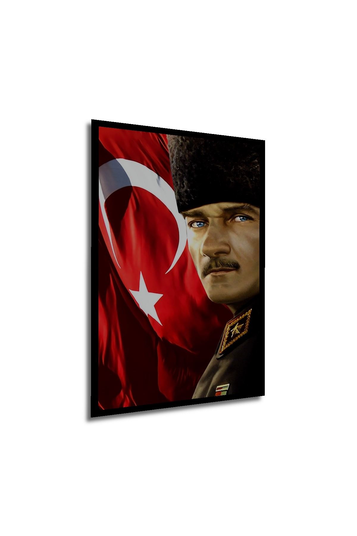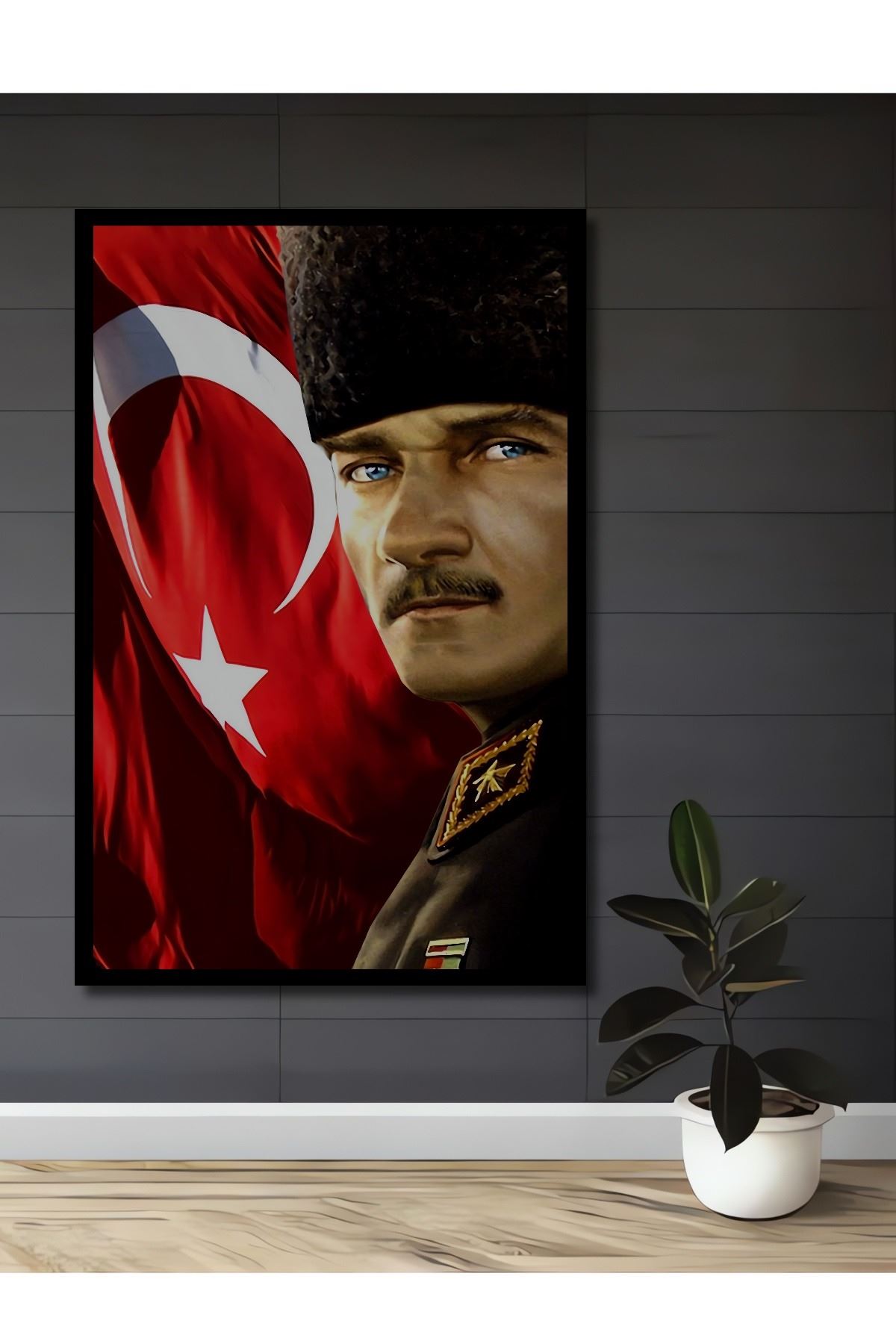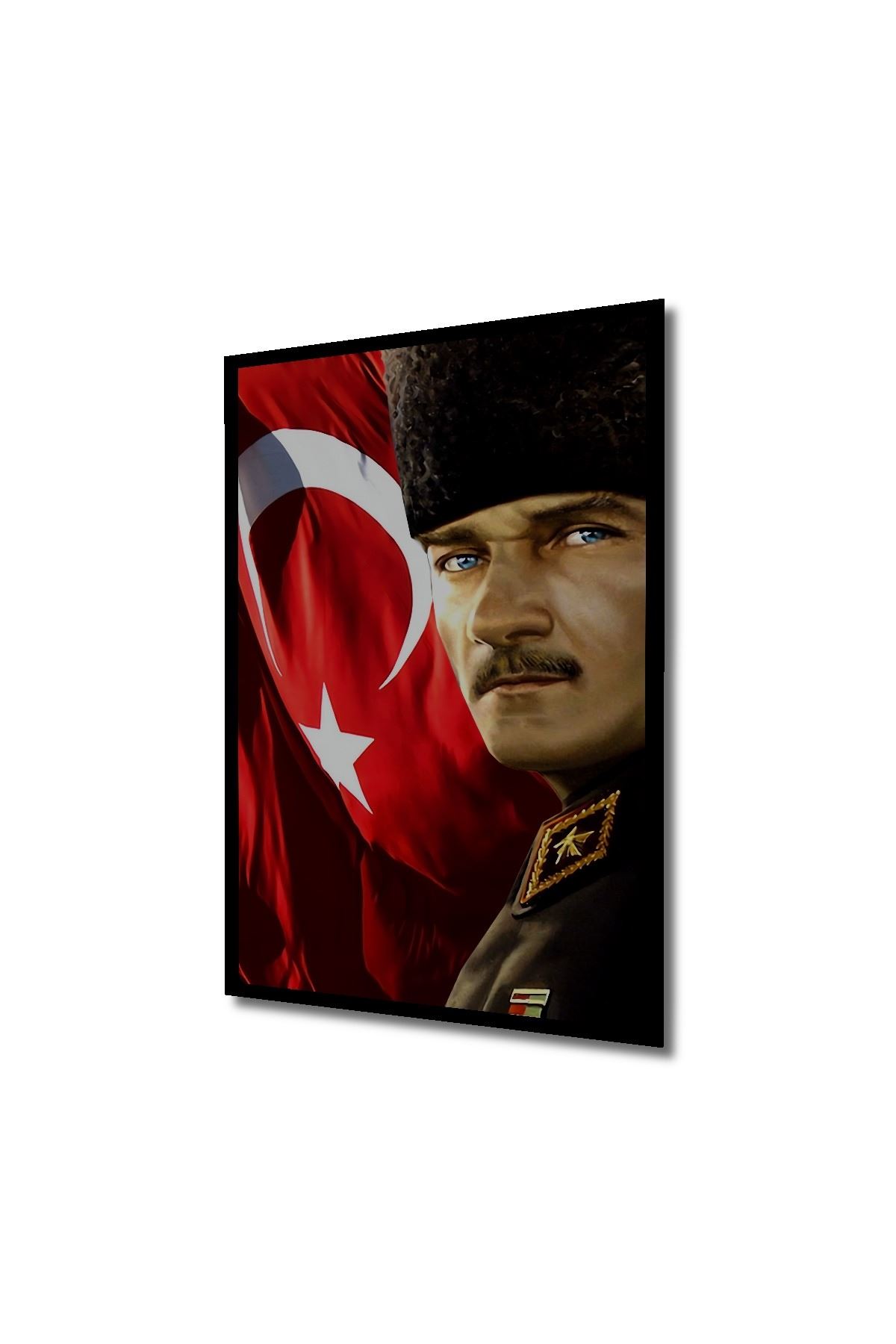 Çerçeve Görünümlü Dekoratif Ahşap Kare Atatürk Türk Bayrağı Tablosu Ev/Ofis/İşyeri Tablo