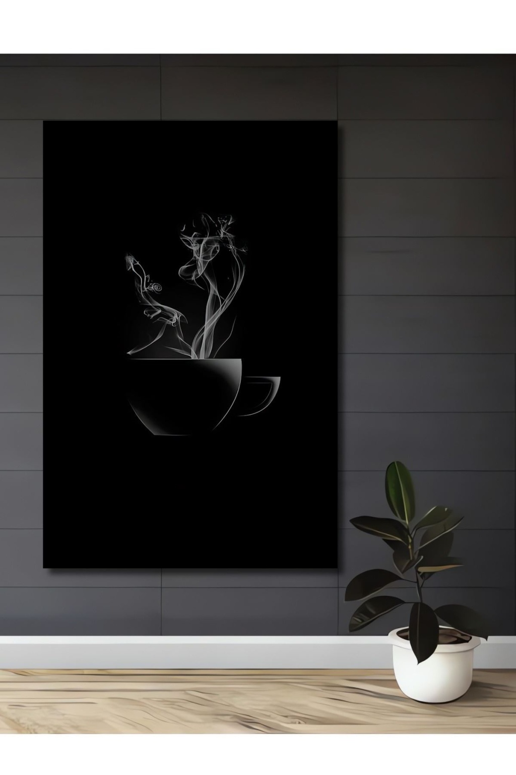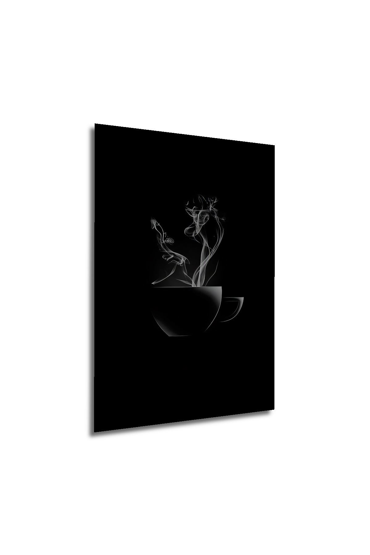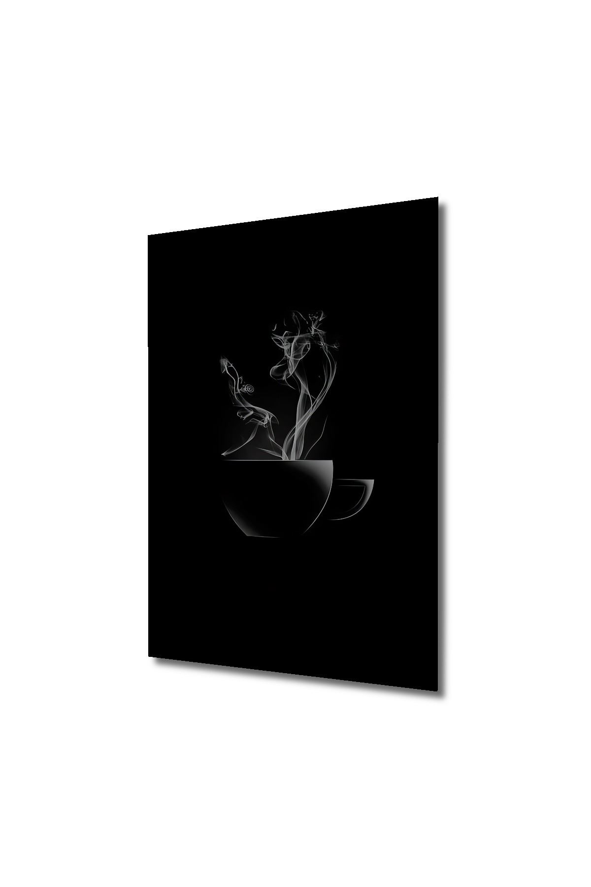 Çerçeve Görünümlü Dekoratif Ahşap Kare Buharlı Çay Fincanı Tablosu Ev/Ofis/İşyeri Tablo