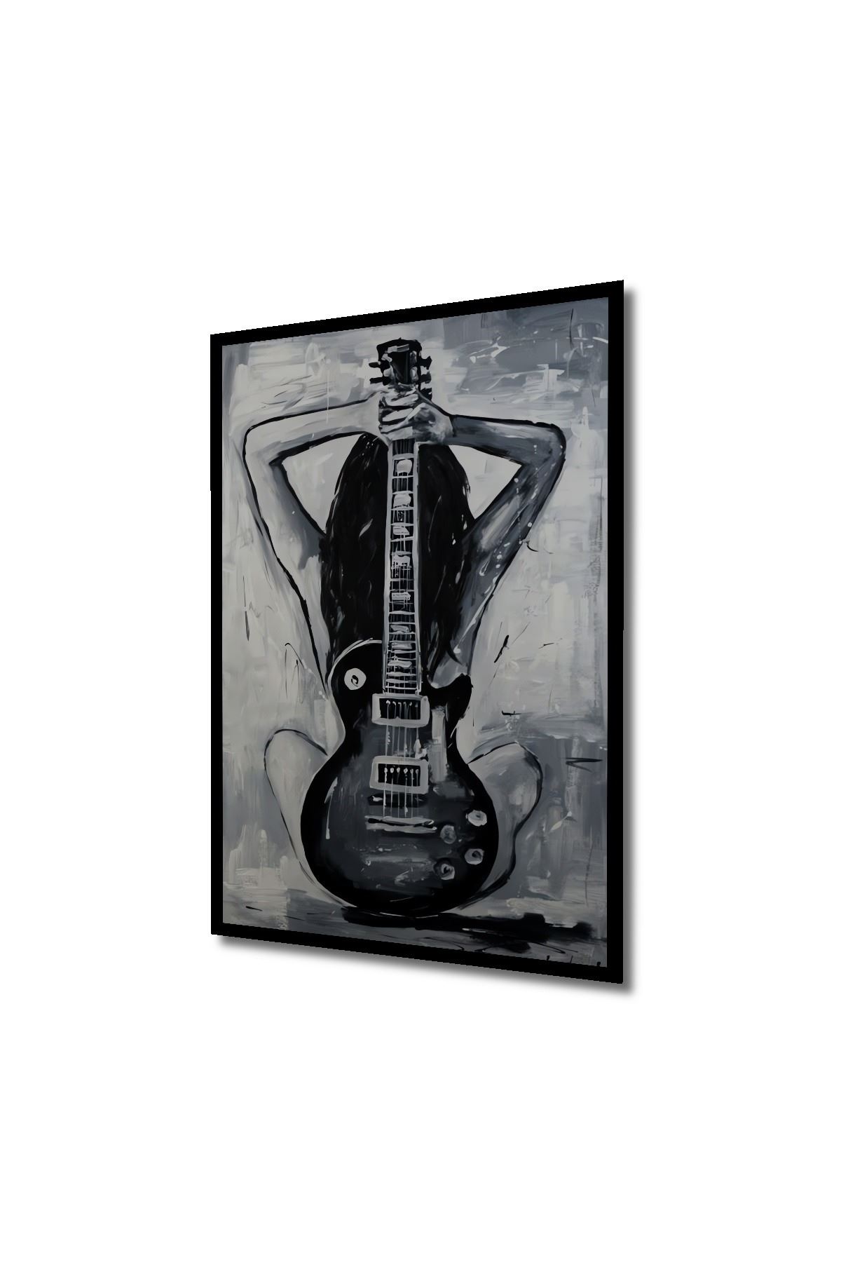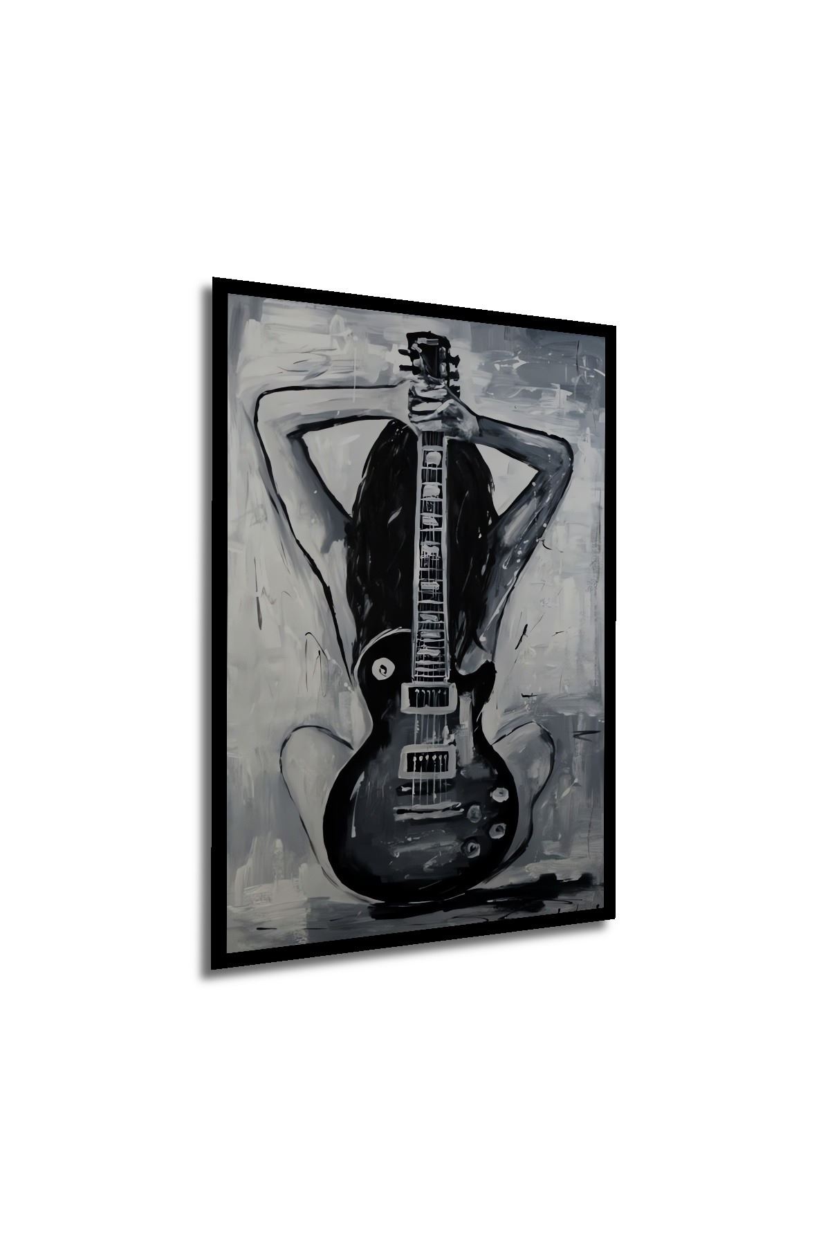 Çerçeve Görünümlü Dekoratif Ahşap Kare Gitar Ve Kadın Tablosu Ev/Ofis/İşyeri Tablo