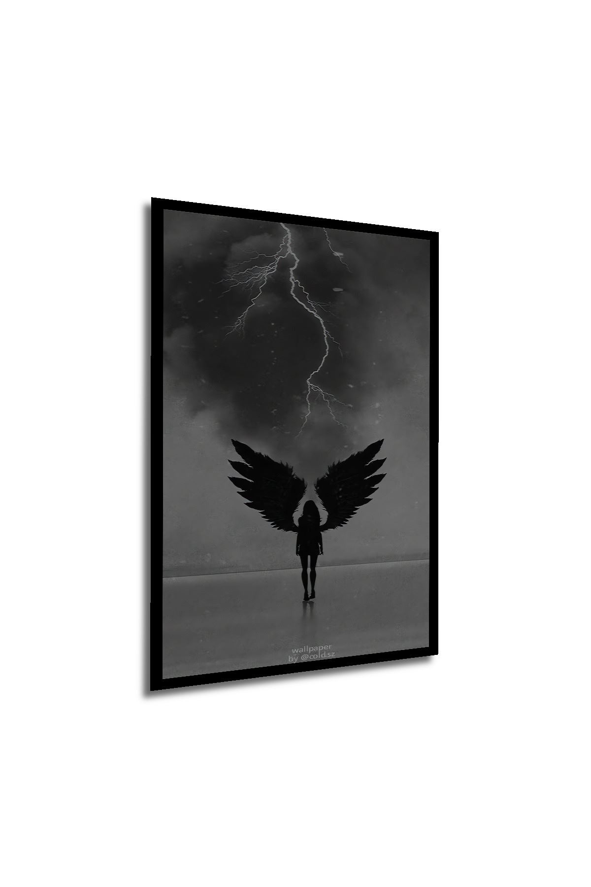 Çerçeve Görünümlü Dekoratif Ahşap Kare Karanlık Melek Tablosu Ev/Ofis/İşyeri Tablo