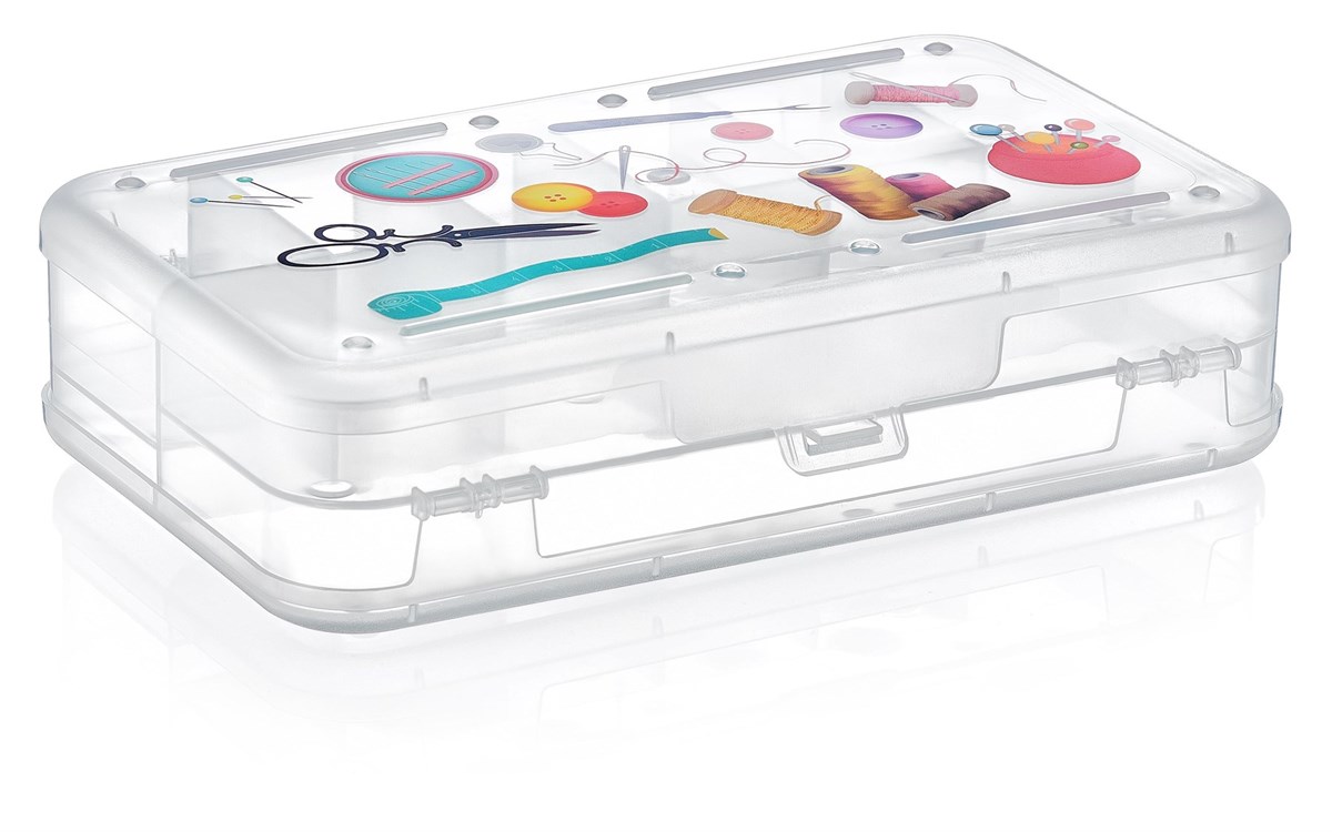 Plastik saklama kutusu içerisine makas, İğne takımları, dikiş ipleri gibi ürünleri rahatlıkla sığdırabilirsiniz.