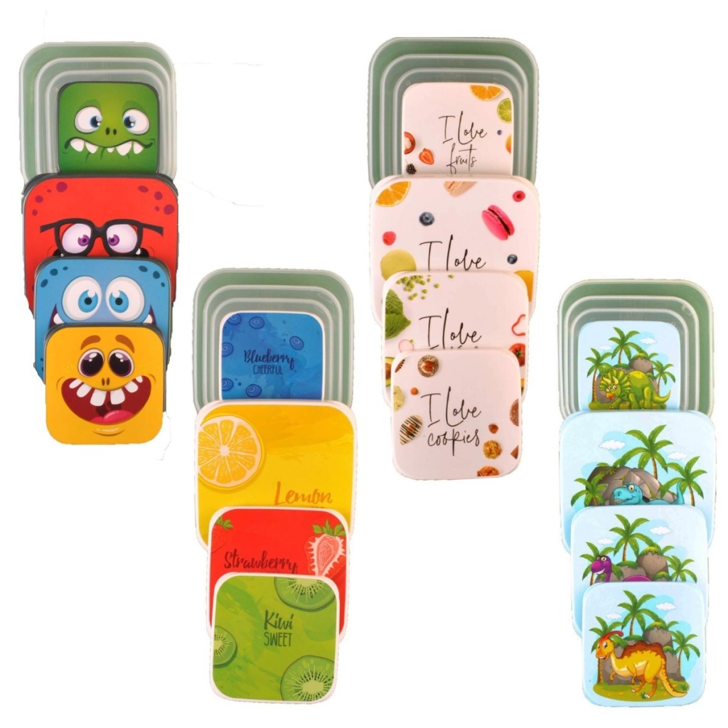 Son derece sempatik tasarımlı kapaklara sahip iç içe saklanabilen 4 farklı boyda saklama kaplarını çok seveceksiniz.