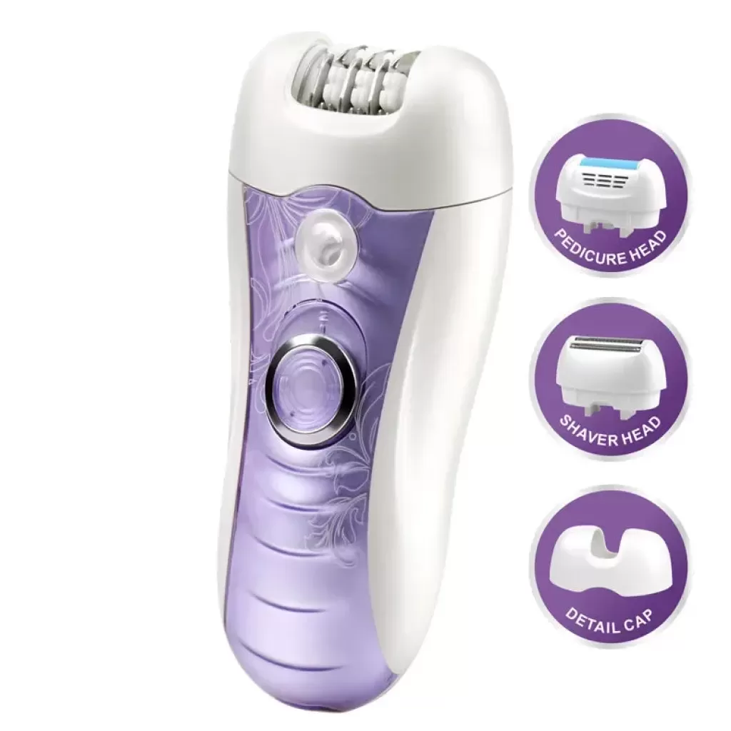 4'ü 1 arada Çok İşlevli Epilatör: Yüz, kol, bacak gibi bölgelerdeki tüylerin özel olarak alınmasına yardımcı olan 4 değiştirilebilir başlık içeren epilasyon aleti.