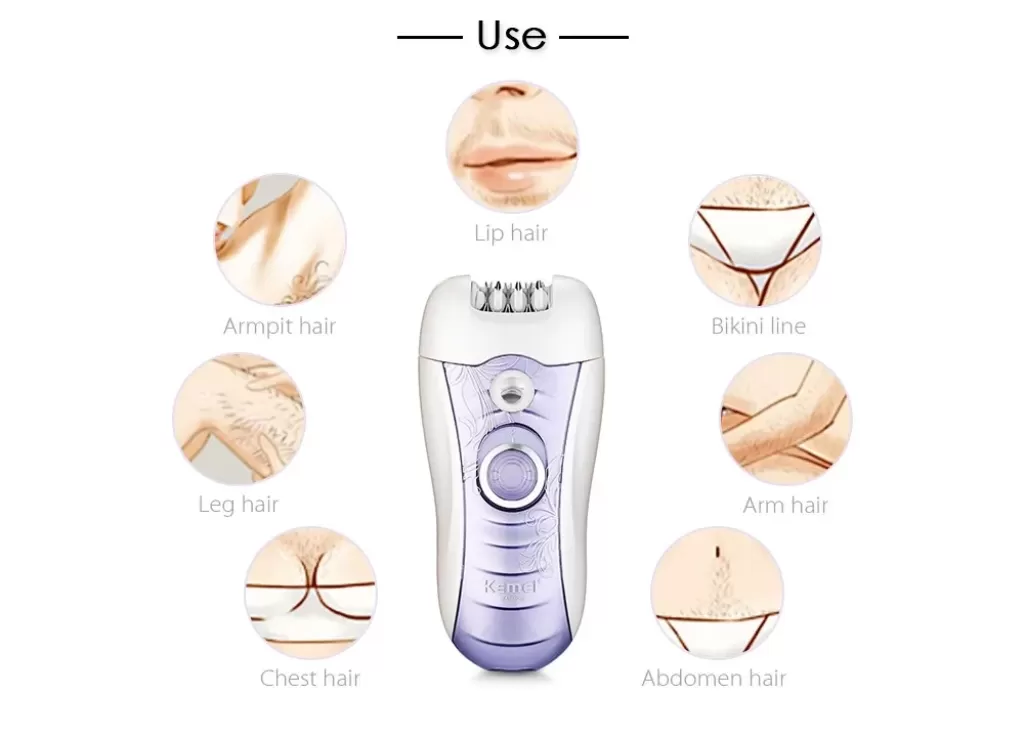 4'ü 1 Arada Çok Fonksiyonlu Epilatör: Epilasyon cihazı, yüz, kol, bacak, vücut, koltuk altı ve bikini bölgesi gibi bölgelerdeki tüyleri kökten almak için kişiselleştirmeye yardımcı olan 4 değiştirilebilir başlık içerir. Farklı epilasyon ihtiyaçlarını etkili bir şekilde karşılar. Yüzünüze, kollarınıza, bacaklarınıza, vücudunuza, koltuk altlarınıza ve bikini bölgenize uygun 4 değiştirilebilir başlık ile uzun süreli pürüzsüzlük ve çok yönlülüğü keşfedin. Bu güçlü epilatör, hızlı ve etkili epilasyon seçenekleri için tüyleri kökten alır. 4'ü 1 Arada Çok Fonksiyonlu Epilatör ile ipeksi pürüzsüz bir cilt için istenmeyen tüylerden kökten kurtulun. Bu çok yönlü epilatör, yüzünüz, kollarınız, bacaklarınız, vücudunuz, koltuk altlarınız ve bikini bölgeniz için kişiselleştirilebilir epilasyon seçenekleri sunan 4 değiştirilebilir başlık ile birlikte gelir. Zaman alıcı ve etkisiz epilasyon yöntemlerine veda edin ve bu güçlü epilatörün etkinliğini keşfedin.
