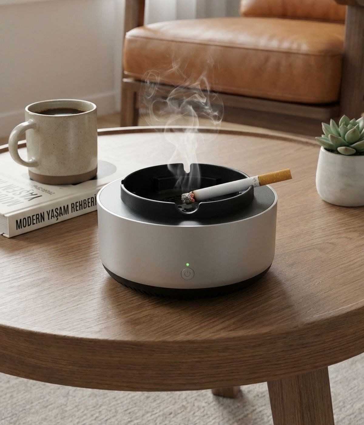 Dumanı İçine Çeken Akıllı Kül Tablası – Kokusuz, Filtreli ve Otomatik Duman Emici Küllük