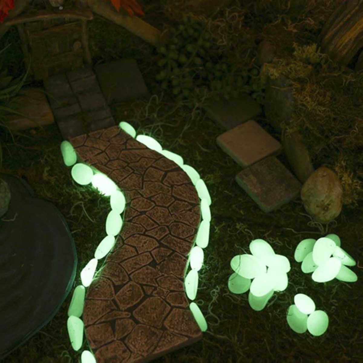 50 adet Parıltılı Bahçe Saksı Akvaryum Fosforlu Çakıl Taşı ile saksı, bahçe ve vitrin gibi alanlarda muhteşem bir görüntü oluşturabilir, tüm iç ve dış mekan aydınlatmada kullanabilirsiniz.