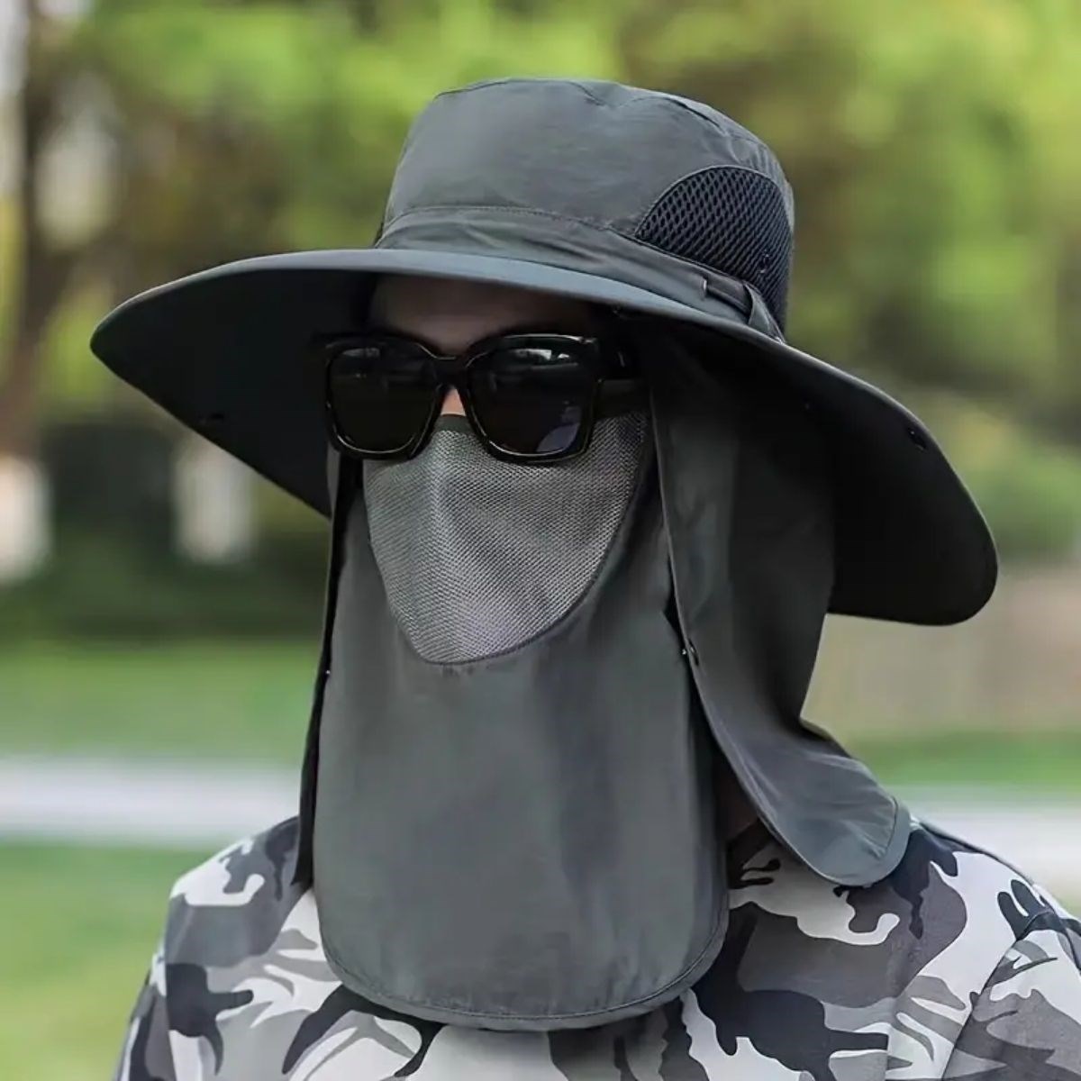 Güneş Koruyuculu Nefes Alabilen Maskeli ve Boyun Kapaklı Geniş Kenarlı Balıkçı Şapkası