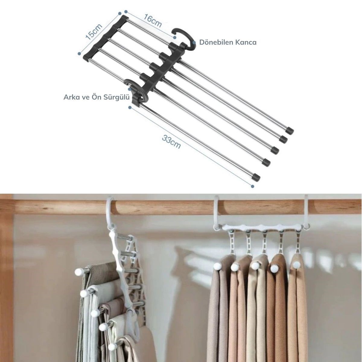 Hareketli Dolap İçi Pantolon Kravat Şal Askı Sistemi Düzenleyici Askılık