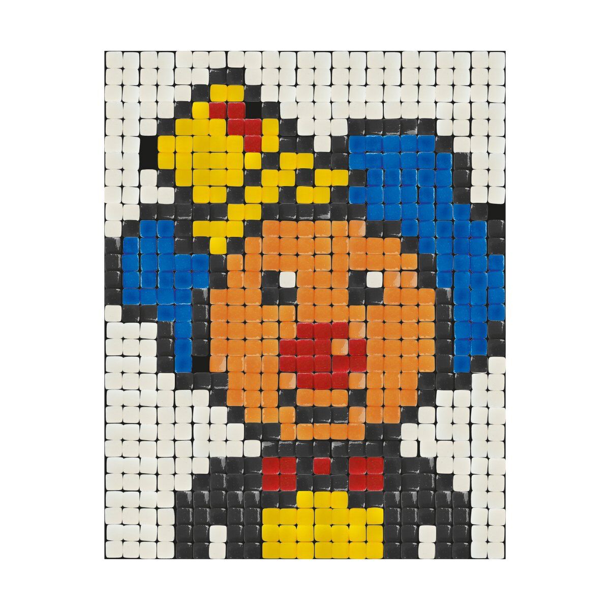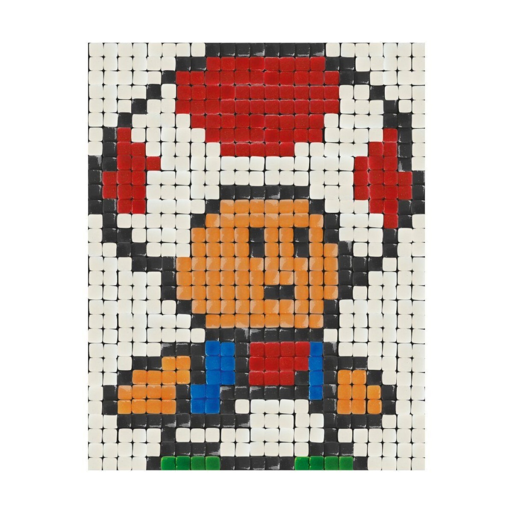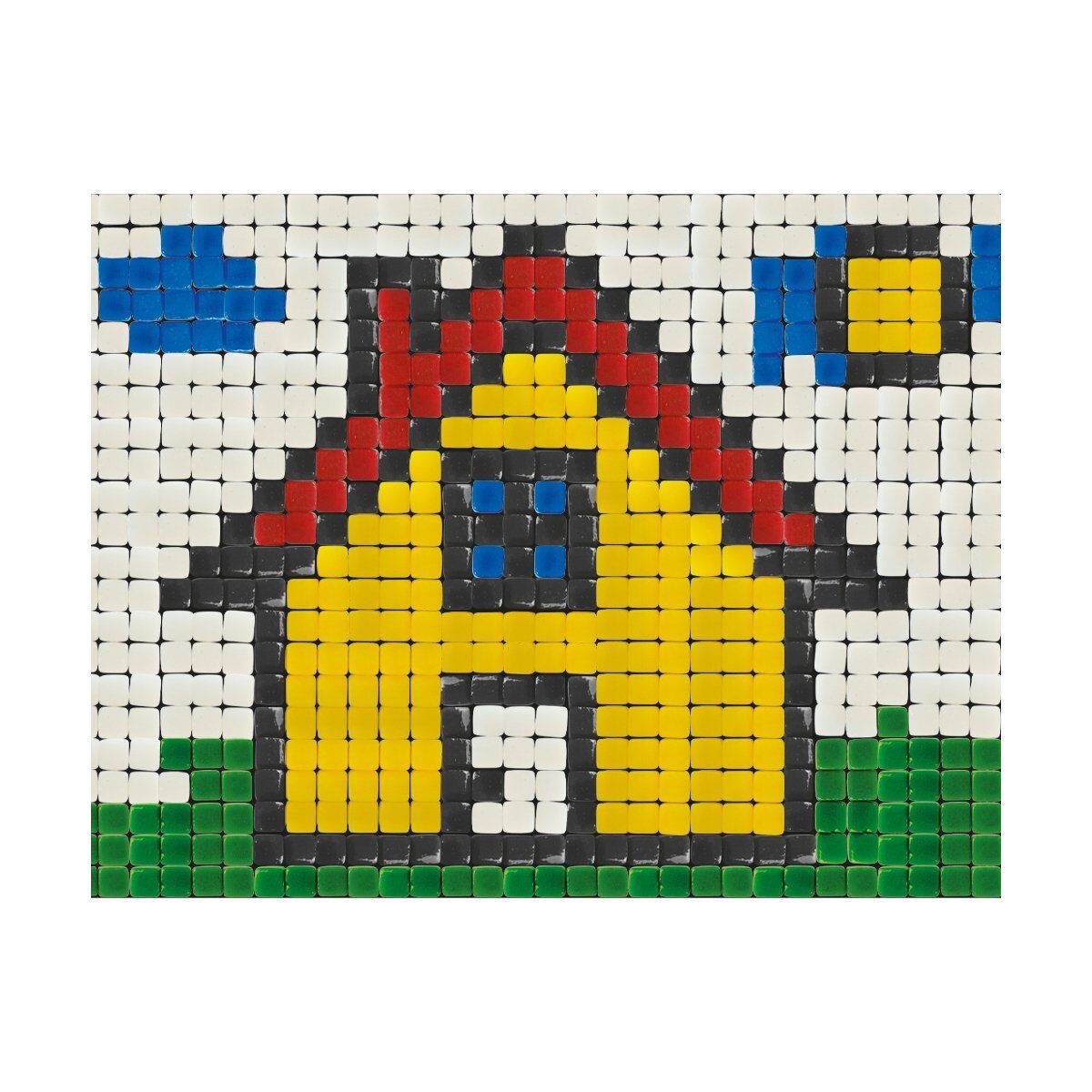 Cam Mozaik basılmış desenin uygun çerçeveye yerleştirilmesinden sonra renkli mozaik taşlarının