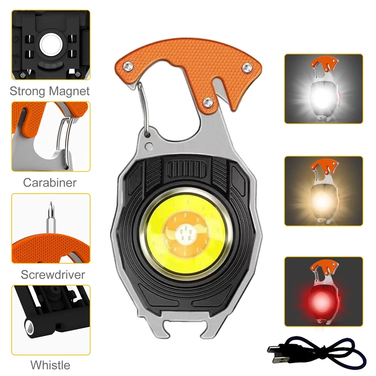 Şarjlı 800 Lümen Güçlü Çakmaklı Kamp Feneri Işığı Anahtarlık Taşınabilir Type-C 6888 Ultra Güçlü Led Karabina Combat 12 Mod Kamp Fener Çakmak Düdük Bıçak Type-c 3 Renk