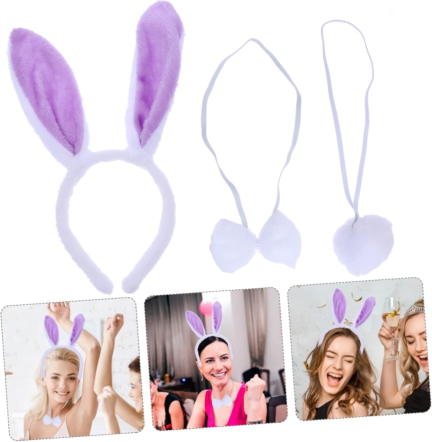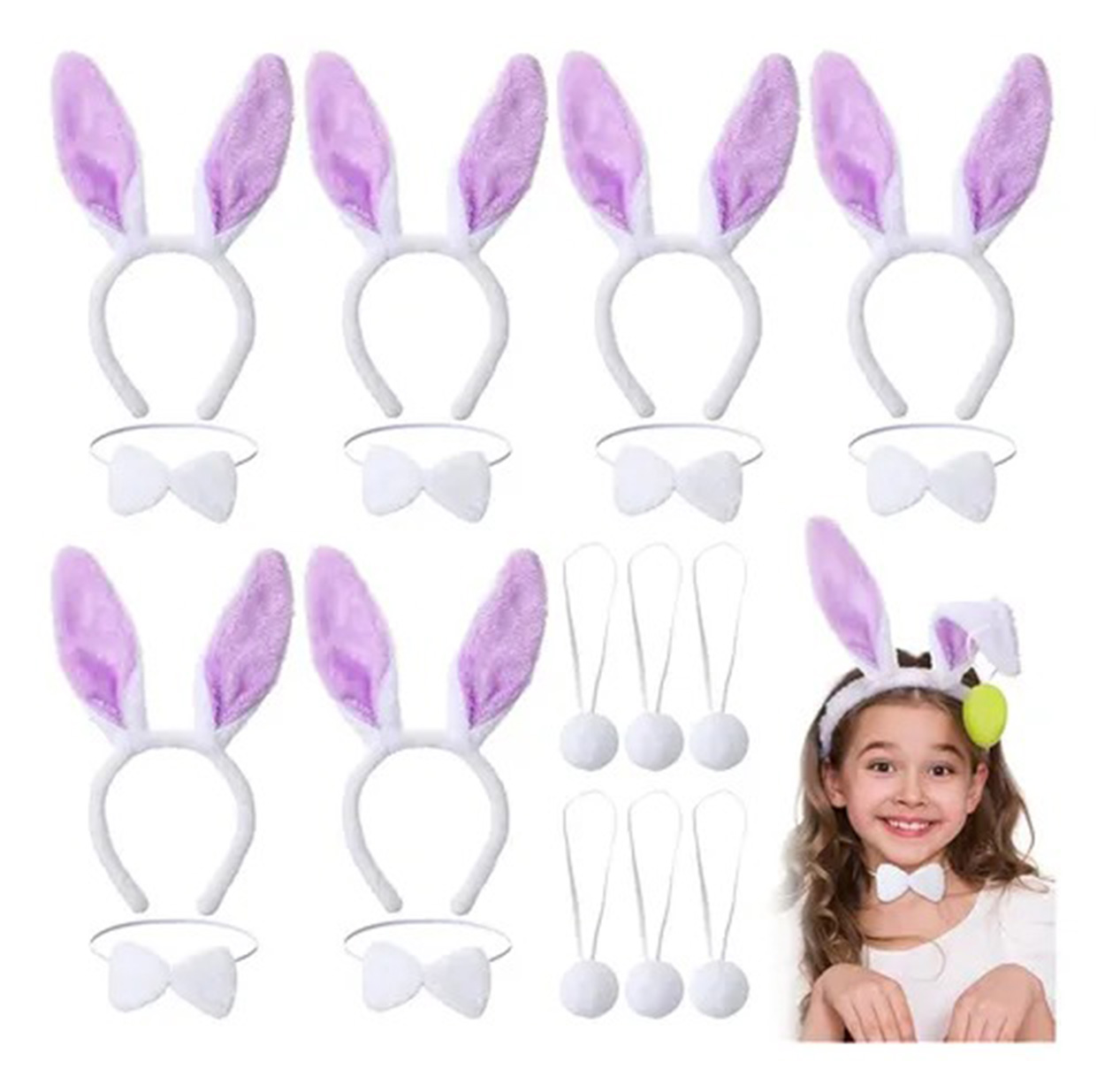 Masalsı bir görünüme hazır mısınız? Lila Mor Tavşan Kulak Papyon Kuyruk 3'lü Set, Paskalya partilerinden temalı doğum günlerine,kostümlü etkinliklere kadar her ortamda dikkatleri üzerinize çekmeniz için tasarlandı. Bu sevimli tavşan kostümü seti ile anında eğlenceli ve büyüleyici bir karaktere bürüneceksiniz!