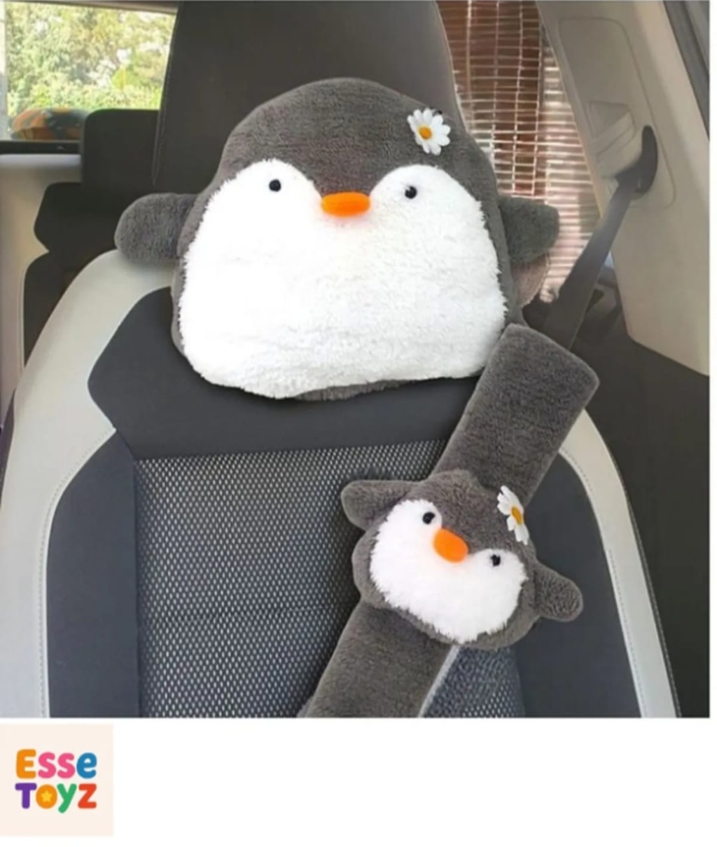 Neşeli Penguen Araba Yastığı ve Emniyet Kemeri Kılıfı