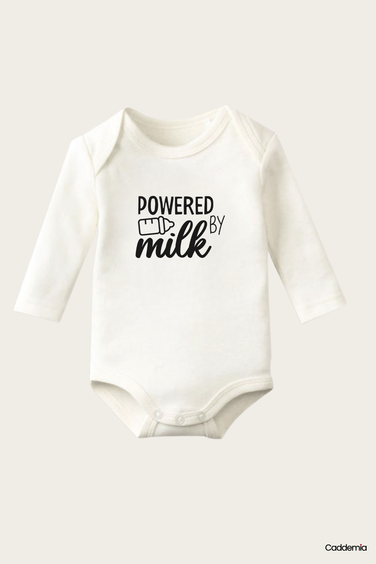 Powered By Milk Yazı Temalı Baskılı Pamuklu Uzun Kollu Çıtçıtlı Bebek Body Zıbın Atlet Tulum