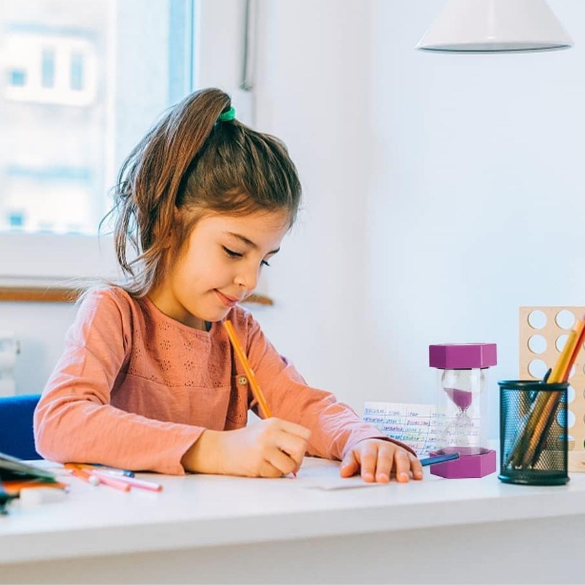 Renkli kum yapısı, cam hazne içerisinde akarken görsel bir estetik oluşturur. Her ortamda dikkat çeken tasarımı sayesinde ofis, çalışma masası ve ev dekorasyonuna modern bir hava katar.