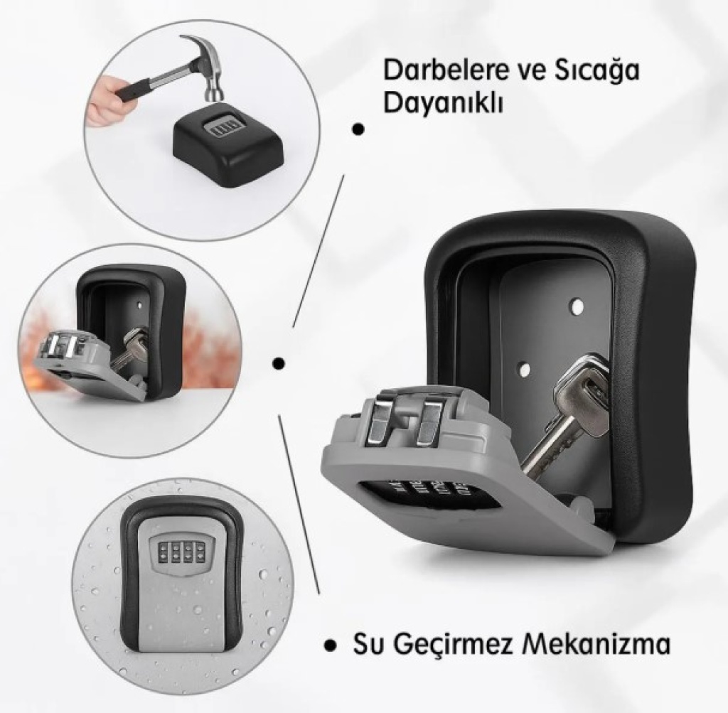 Kolay Kullanım: Anahtarınızı içine koyun, şifreyi belirleyin ve kutuyu kapatın. Anahtara ihtiyacı olan kişi şifreyi girerek kolayca erişebilir.