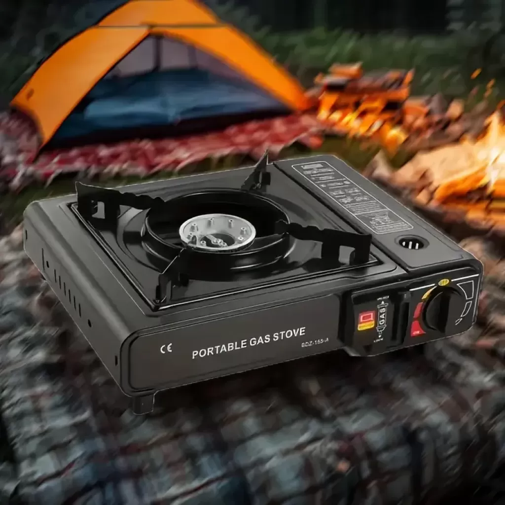Tekli Portatif Kamp Ocak, Rüzgarlıklı, Ekstra Gaz Girişli