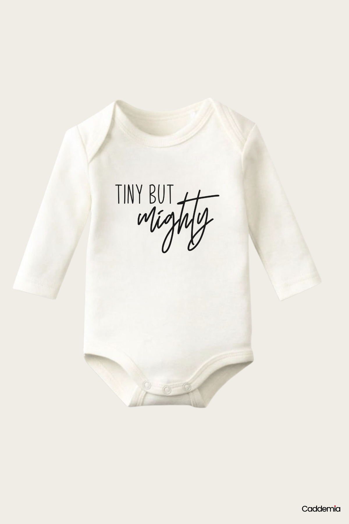 Tiny But Mightly Yazı Temalı Baskılı Pamuklu Uzun Kollu Çıtçıtlı Bebek Body Zıbın Atlet Tulum