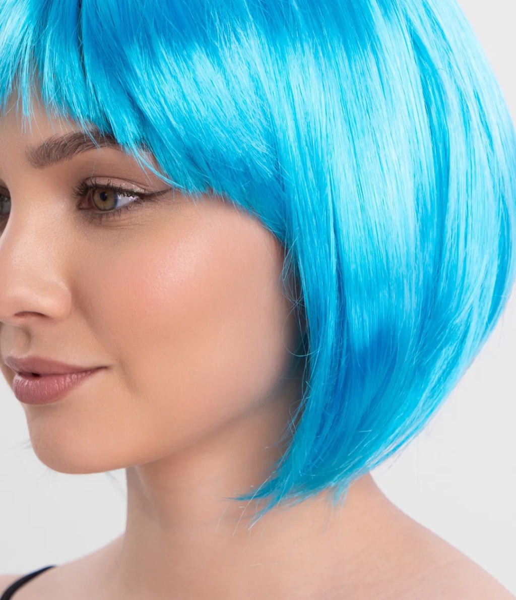 Turkuaz Renk Parti Peruğu Küt Saç (5343)