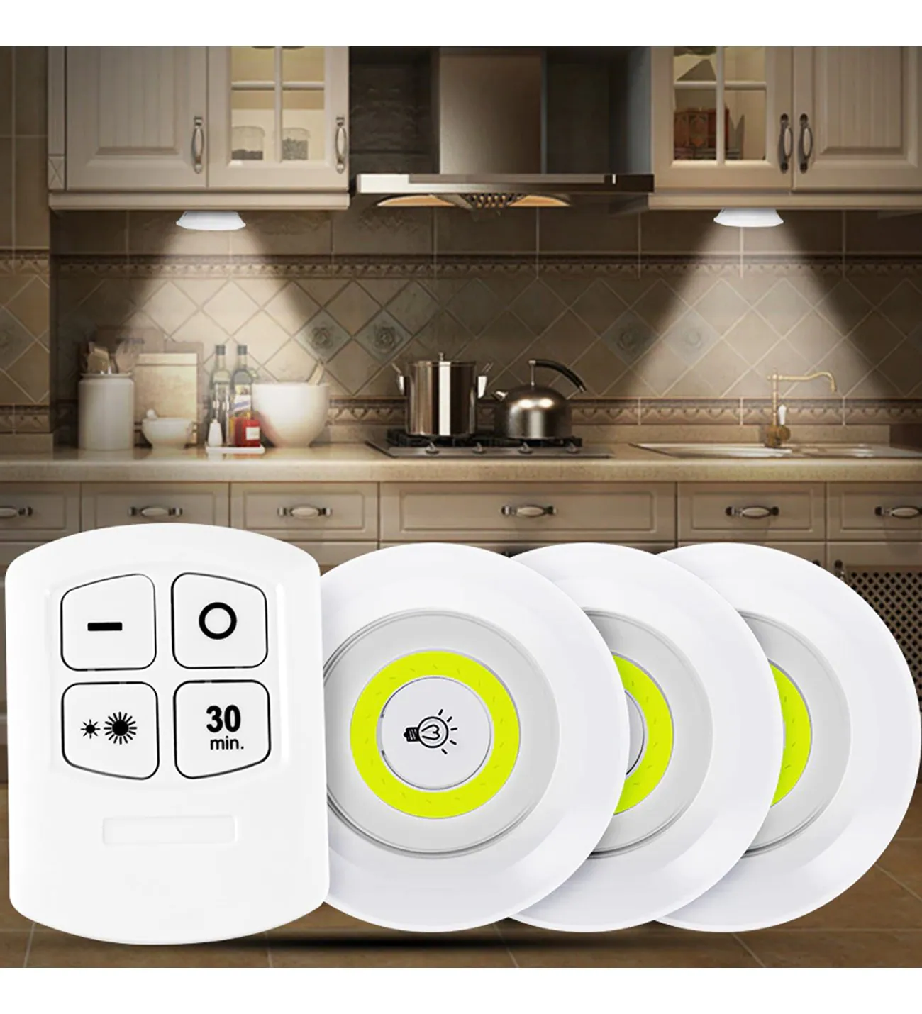 Uzaktan Kumandalı Yapışkanlı 3 lü Led Spot Lamba İster kumanda ister led üzerinde bulunan düğme ile açıp kapatabilme, ışık seviyesini ayarlayabilme...
