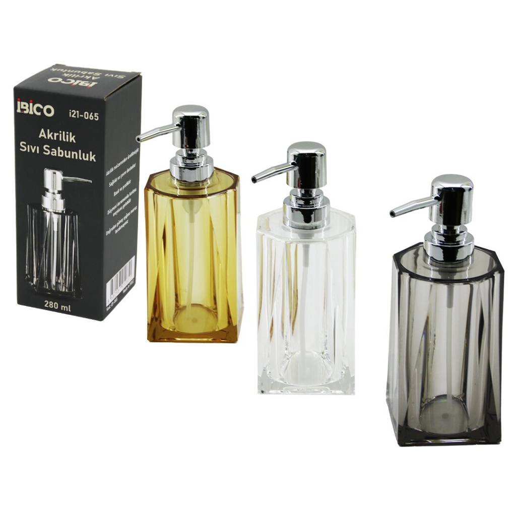 UZUN KARE TABAN - YVRLK AĞIZ - 4+4=8GEN GÖVDE ŞEFFAF - RENKLİ AKRİLİK - MİKA KRİSTAL SIVI SABUNLUK 280ML (5343)