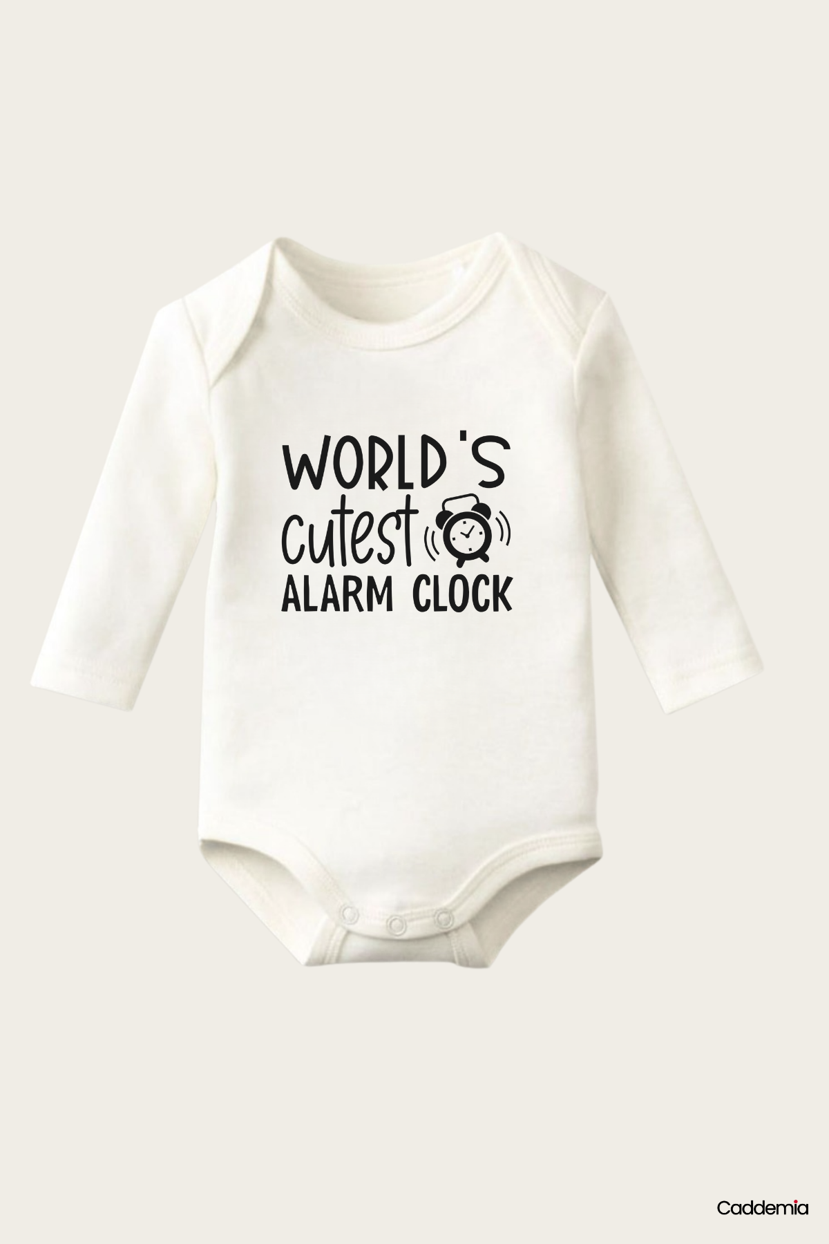 World's Cutest Alarm Clock Yazı Temalı Baskılı Pamuklu Uzun Kollu Çıtçıtlı Bebek Body Zıbın Atlet Tulum